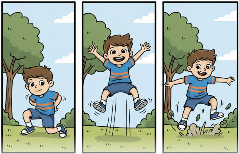 療育場面でも動詞の学習は、動画はもちろんのこと、静止画カード1枚より「3コマ」「パラパラ」などの工夫をして“時系列”を用いていきたいですね。